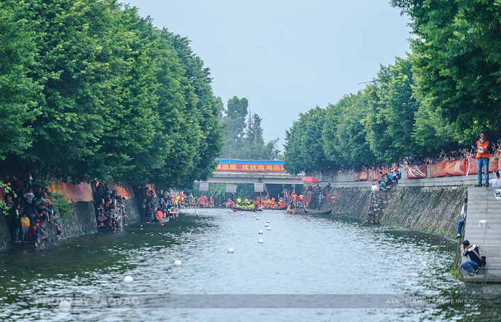 当比赛一开始,九江涌上52支龙舟队进行31场速度与实力的比拼,两组队伍在奋力划浆,现场的锣鼓声、呐喊声、欢呼声交织在一起,形成了九江独有的国庆龙舟乐章。放眼远看,河涌两岸早已人头涌涌,挤满了前来观赛的市民,场面极为壮观。