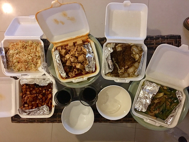 晚餐我们找到一家北京餐馆,打包回酒店吃。