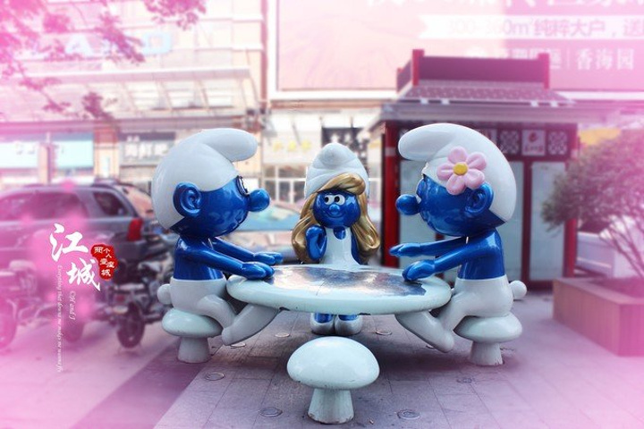 晚上没有注意到,在宝丽金中央荣耀和万达影城之间的广场上有很多很有趣的雕塑↓