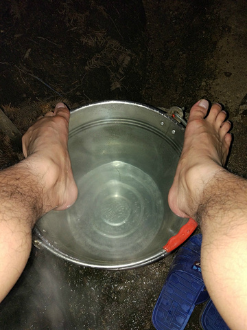 第二天晚上在一个有人的客栈前扎营,给了老板几块钱弄了一桶热水泡泡脚,实在是惬意
