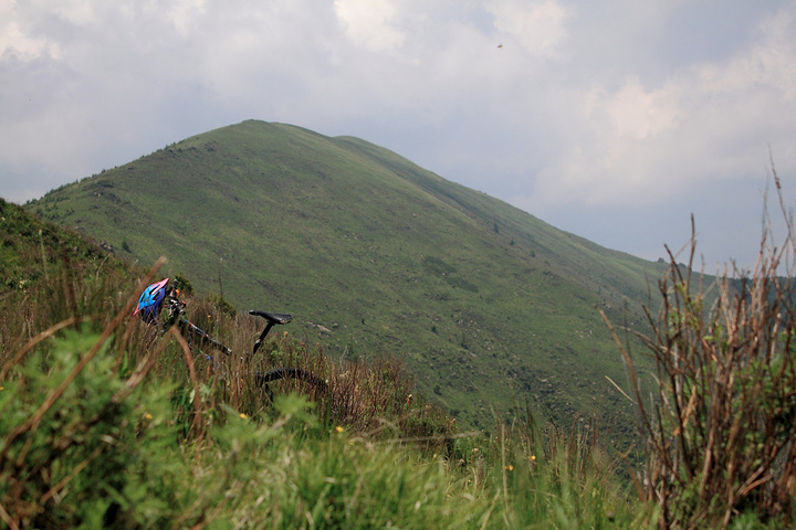 从进入土路开始到山脊,我们已经爬升了大约2/3的时候,蛙总指着右手边的山坡说从这里切上山梁。
