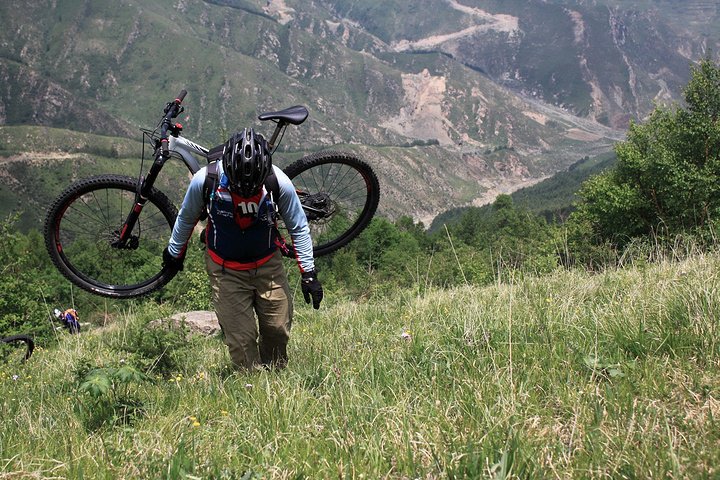 大约20公里海拔上升650米后,正式进山,开始推车。