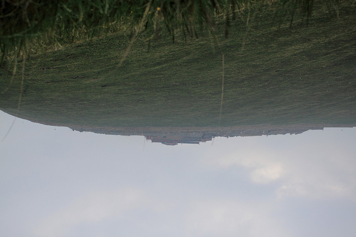 这张照片没放反,是实在好累,躺在草甸上,仰头望着东台时拍的。