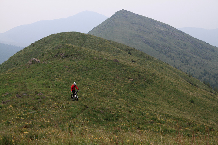 山脊骑行结束。下一步我们是从右侧绕过眼前这个山峰。东台就在不远的那一边!