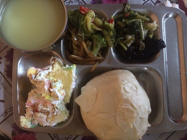 昨天不是说过晚饭味道还不错嘛。然而..然而的是今天早饭昨天跟晚饭一模一样!卧槽..可以预见到这里的饭菜是不是永远不变?细思恐极。