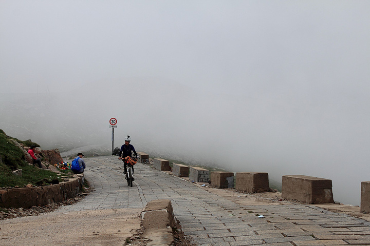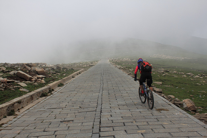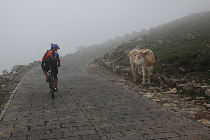 从红门岩走石板路去最高峰北台。一路有开车的、徒步的,我们是骑车的~