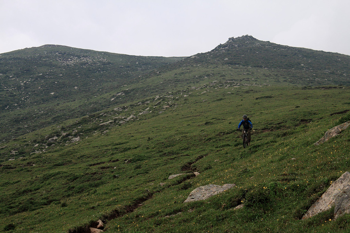 就像昨天离开盘山防火道抗车上山梁一样,我们看得到要去的地方,但是没有路!真的没有路吗?其实全是路!只要能走的地方就是路!所以~这一路越野下山,只要不跑偏了撒了欢儿随便走~来自游记不一样的五台山——骑行在山脊上!