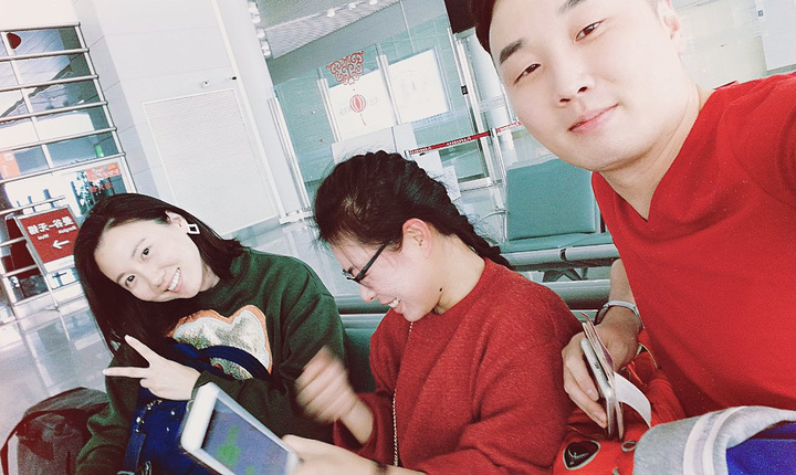 在晋江机场,和厦门、温州来的两位美女成功汇合。准备登机。