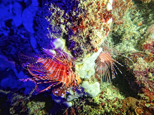 夜幕即将降临,阿k带着我们下夜潜,据说能看到麒麟鱼啪啪啪(后面也证实能看到,只是没拍到……),夜潜依旧是岸潜……orz……