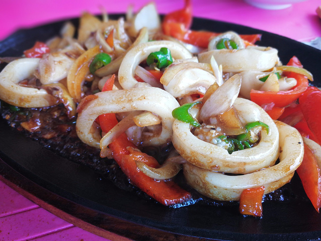上岸之后,累得够呛,那必须得找家店好好补补。于是,我们又开始了美食搜捕。这次我们要再吃一次大餐,毕竟这是在墨宝的最后一晚上了嘛。于是找了一家临海的餐厅,感觉不错,而且价格超级便宜。