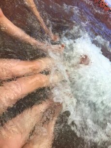 泡温泉中