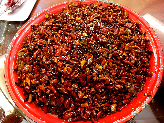 绝对的赞!鸡是买了直接杀,可以选择鸡血的吃法,吃不了的辣子可以磨碎打包,真的推荐