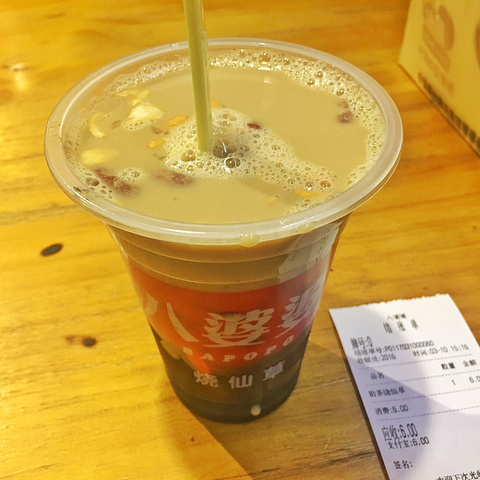 【八婆婆烧仙草】下雨,太冷了走在路上看到八婆婆随便买的,说实话不好喝,以前5块钱还涨价了哈哈哈,以前吃就觉得不好吃,不过也是老店了,挺多连锁的,随便吃吧!