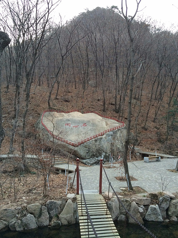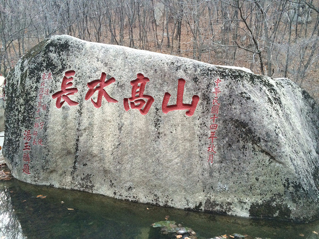 凤凰山书法题刻众多。“东天一柱”好象泰山也有一块同文的题刻。泰山那块是清人吴廷斌所留。凤凰山则是近代书法家刘炳森1996年6月留下的墨宝。