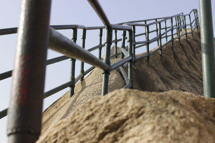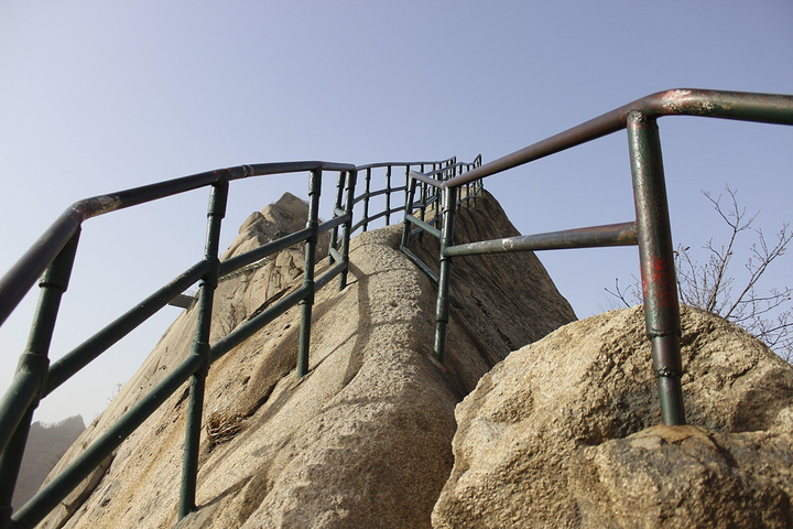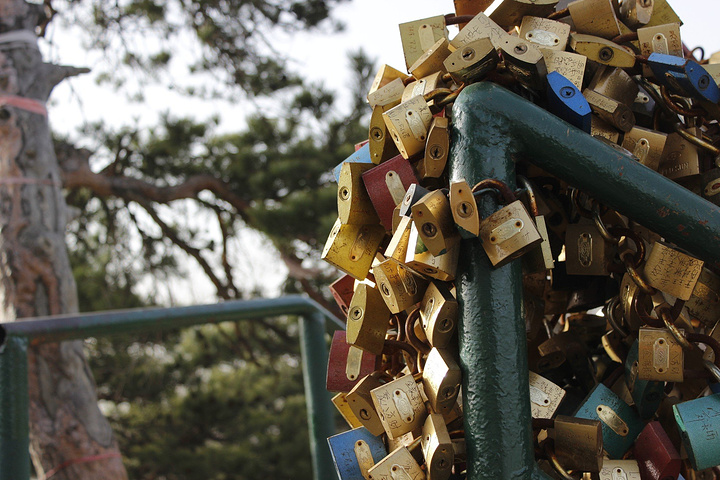 这里和华山挺像的,有好多人买锁什么的锁在上面。上面都刻上字啦,华山上都是到一定时间都会把原来的锁都给撤了,剪断扔在边上了,这里没看到,可能锁的人没有华山那么多吧