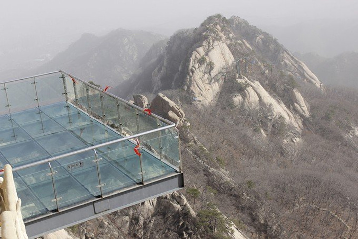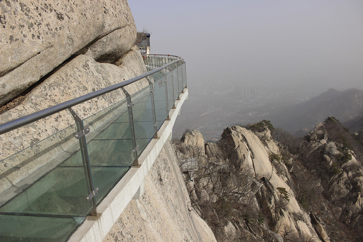 到老牛背,玻璃栈道就在眼前了。老牛背真的很窄