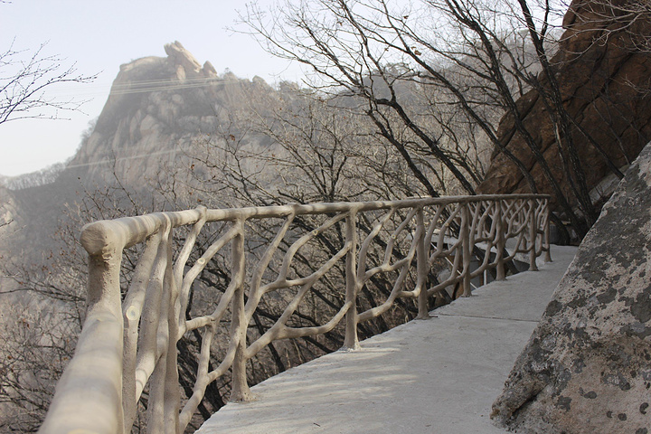 黑风栈道比较长,但是现在这个季节来树还没有绿,看起来全是枯萎的一片。如果树都绿的话特别的美
