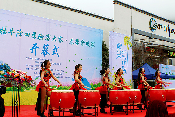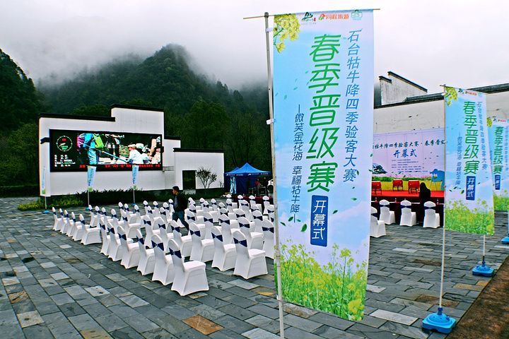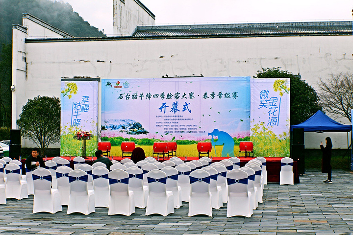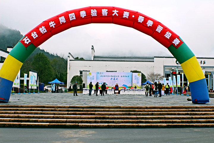 开幕式会场设于石台牯牛降景区的游客服务中心广场上,开幕式引来很多游客围观。