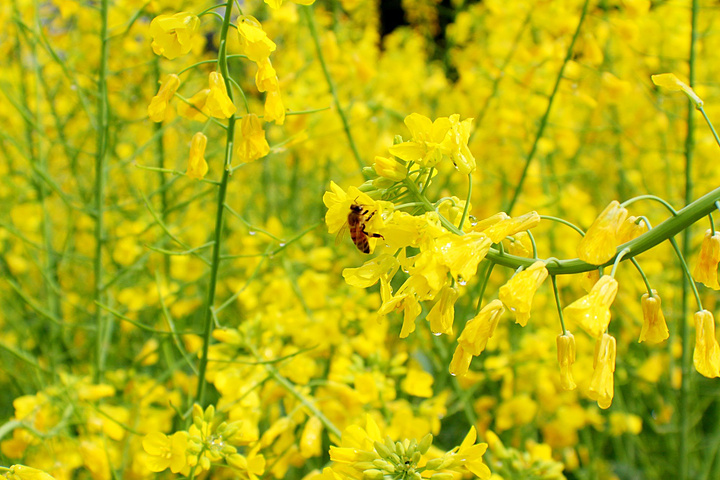 就连勤劳的小蜜蜂,也穿梭于油菜花中,不负这大好春光。