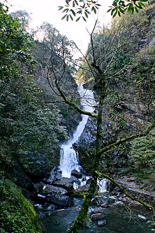 四叠瀑布的水来自主峰和奇峰,水流终年不断。水流拍打着怪石,水花砸落在潭中,可以听到巨大的水花声,在山间,仿若奏响山水的交响曲