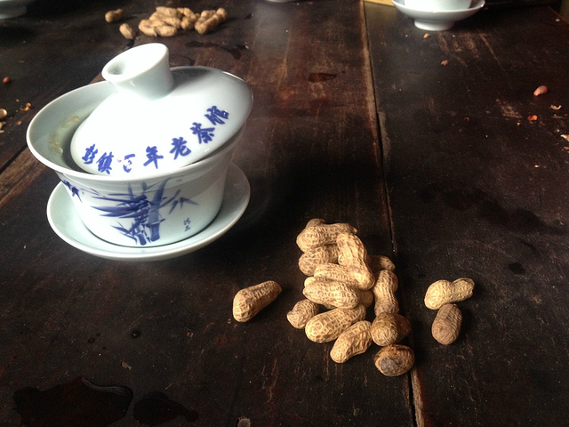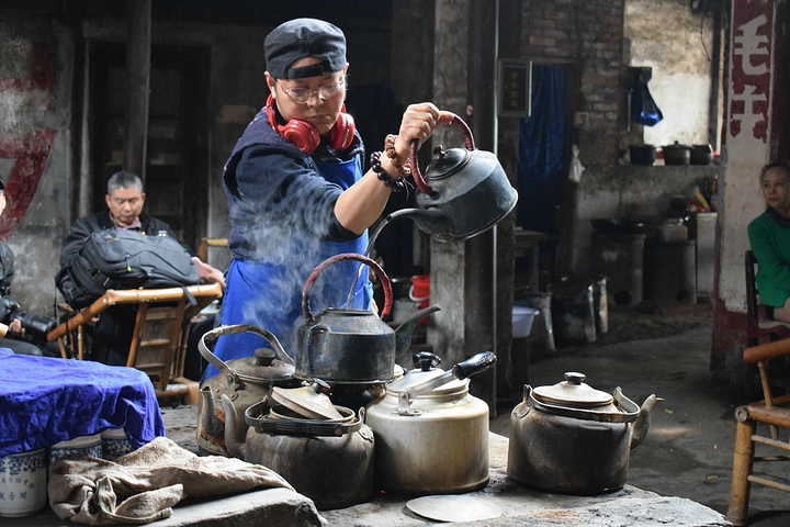 观音阁老茶馆,喝茶的人很多,茶馆还保留毛主席时代的风格。基本都成了摄影基地。同桌一位好热情的老先生,特别喜欢拍照,都快比上家吉了。还请我们吃花生,又给了一串手链和地址,让我们有空找他。哈哈。