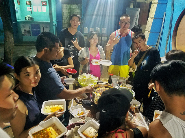 一个不会做香辣火锅的工业设计师不是一个优秀的PADI潜水教练!白天潜水撒欢完毕,晚上与在汉潜一起学潜水的伙伴们开始火锅的干活,日子就是这样的欢乐与潇洒。店里有一只温驯的小狗狗,据说叫巴扎黑,who knows是不是真的叫这个名儿,因为这狗狗特别高冷,我木有调戏成功,一万点挫败感~~