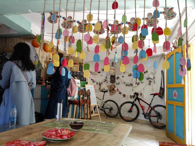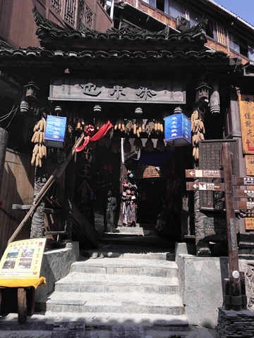 大概中午11点左右就到了苗寨内部,观光车还是方便的,如果走路估计从北门也就20分钟不到。到了之后我们就边走边找入驻的民宿,那是相当难找,因为苗寨是依山而建,一层层建上去的住处,地图也不给力,最后还是民宿小哥过来接我们才找到组织,入住的是第三极微公益客栈,个人感觉还是很有民族特点的,平时价格在100元左右,假期翻倍啊,心疼钱包。第一次入住民宿形式的,吊脚楼的稳固性有点担心,全部实木结构,不能跳,走路不能太大力,好担心不小心从三楼蹦到2楼。隔音效果也是呵呵,旁边房间的说话声都能听到。但是俺刚好是个睡眠质量比较高的生物,并不怎么影响。