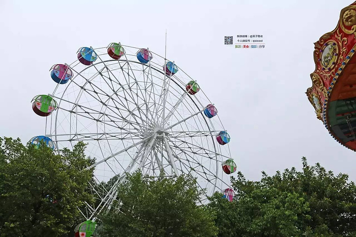 梦幻摩天轮很多人看到都想坐上去体验一把,这一路从广州到高明都没有特别高的建筑,这个摩天轮算是高明区这一带最高的建筑,坐上去可以俯瞰盈香生态园的全景。