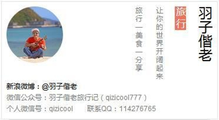 微信公众平台:羽子偕老旅行记(qizicool777)