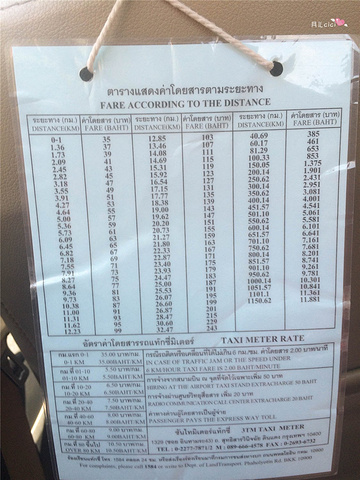 附上出租车上的价目表,大家可以参考,不要被宰的太狠呀!