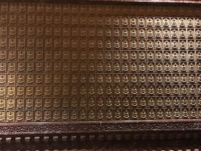 舍利大殿又称佛殿层,距离地面33米,在空间上涵括了地宫第1、2、3层,内外又可分为千佛殿与万佛廊,向人们集中呈现了一个神秘、殊胜的佛国世界。