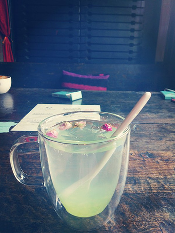 点了店家推荐的蜂蜜玫瑰芦荟茶,真的很好喝O(∩_∩)O在炎炎夏日里是一种享受~