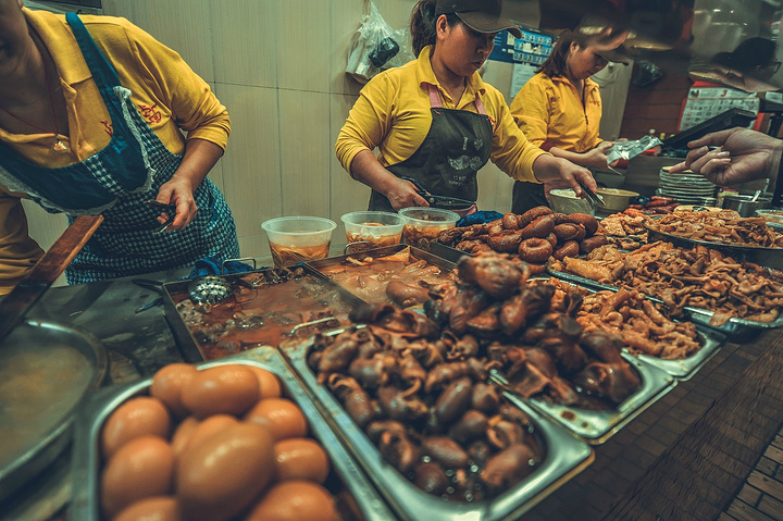 事实证明,第一站选择卤面这种填肚子的主食,实在是极不明智的。还是选择的位于古城边上中山公园旁边中闽百货的一楼的阿芳卤面。饭点居然排队都排到外面来了,而且很多是漳州本地人,可见其受欢迎程度。一碗大碗卤面加料20元,料自选,非常大份,3人点两碗没吃完。。