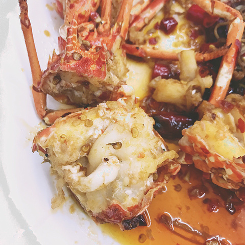 买了一只大龙虾,做成香辣味的了,被大卸八块了!其实清蒸可以试试,我看别人吃的,看着不错,一大整只颜值很高!一只龙虾花了150吧好像!听朋友说不贵!