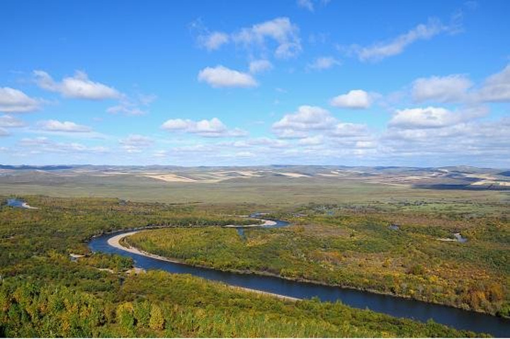 它们围绕着犹如蓝宝石般镶嵌于草原的湖泊、河流悠悠然地漫步···
