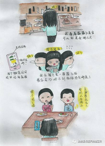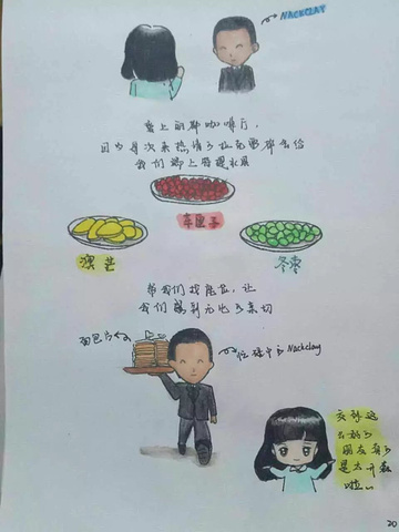 爸爸、妈妈拿好了东西找到位置已经坐好了,我还要去拿自己喜欢的甜点,可能是餐厅太大,居然迷路了,还好有手机和妈妈微信,最后找到了位置,爸爸说以为我去后厨帮忙了呢。呵呵....