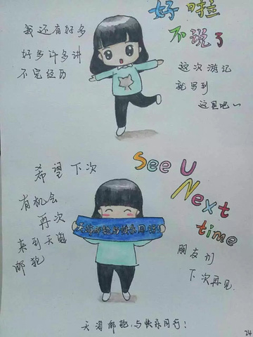 完美的旅行结束了,但还有好多好多难忘的经历,好多想画场景,好多想说的话......暂时先画到这里,说到这里,我还要继续努力。为下一步旅行做准备~~~~期待下一次与天海邮轮再次相会,天海邮轮让我们与快乐同行~~~~~!!!
