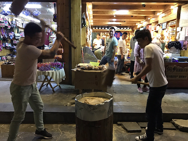 汤牛肉,冰粉,牛皮糖,酒糟丸子,烤山核桃,油茶!吃吃吃,酸汤菜是到现在还在回味的菜系。锤牛皮糖,把糖打到像纸一样杂菌肉饼锅烤山核桃大叶红茶三鲜面酸汤粉油茶。侗寨特色美食来自游记说走就走的旅行--肇兴侗寨