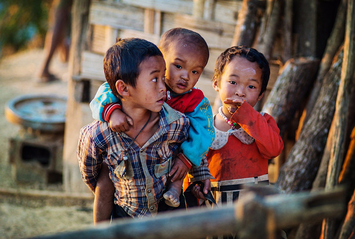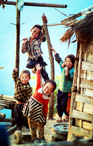太阳快落山了,我们在村子里“参观”了一圈,半山腰的十几间草房里,总有孩子们可爱的小脑袋悄悄露出来。