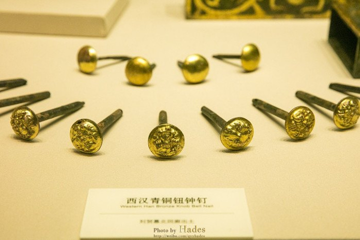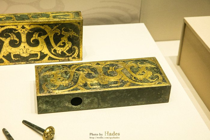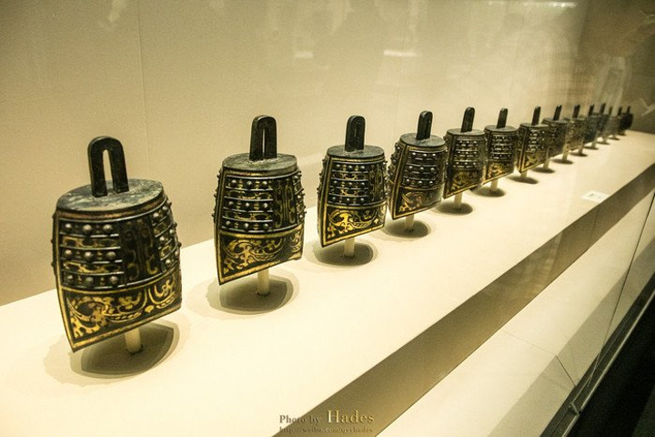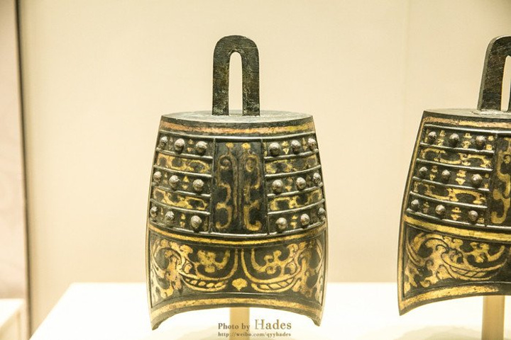 这两块金光闪闪的砖头是编钟架子上的部件,非常的奢华