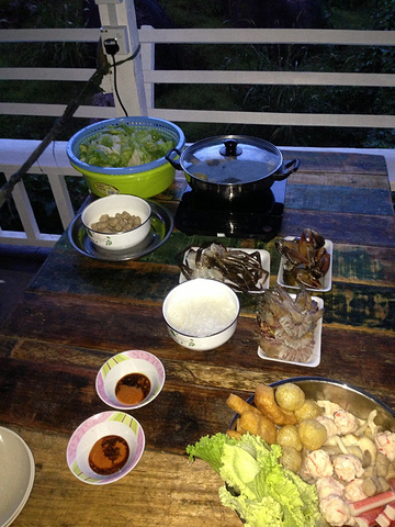 没有蓝天,因为要下雨。。。不过有蓝天也没兴趣看啦,因为!我们!要!开始!海鲜!火锅!啦~