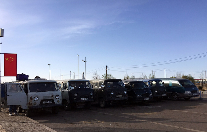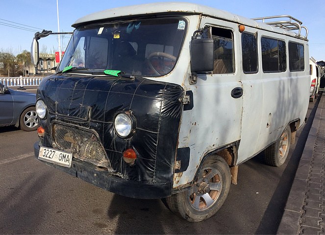 等待通关的蒙古车,破破旧旧像是上个世纪的产品。