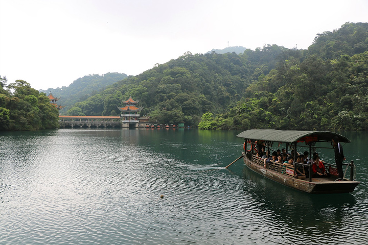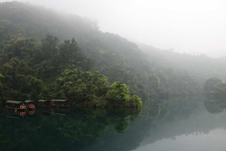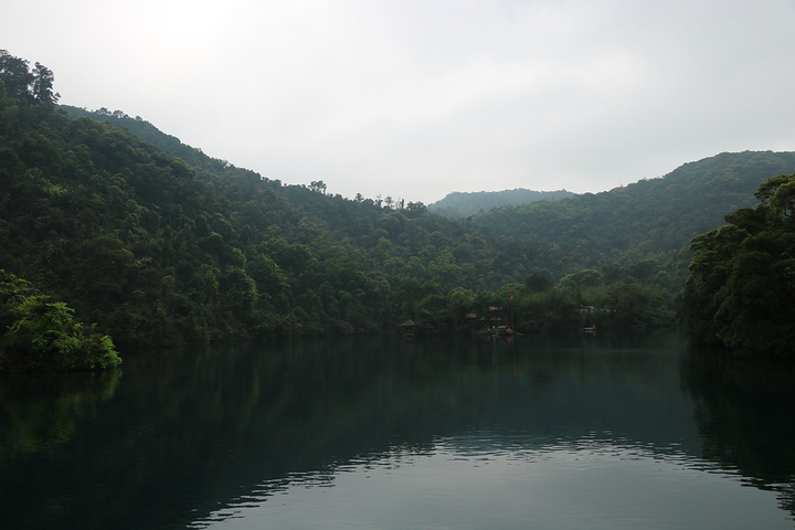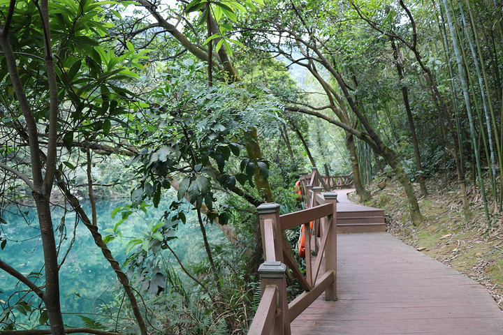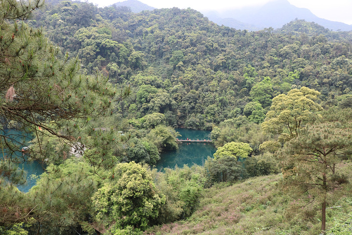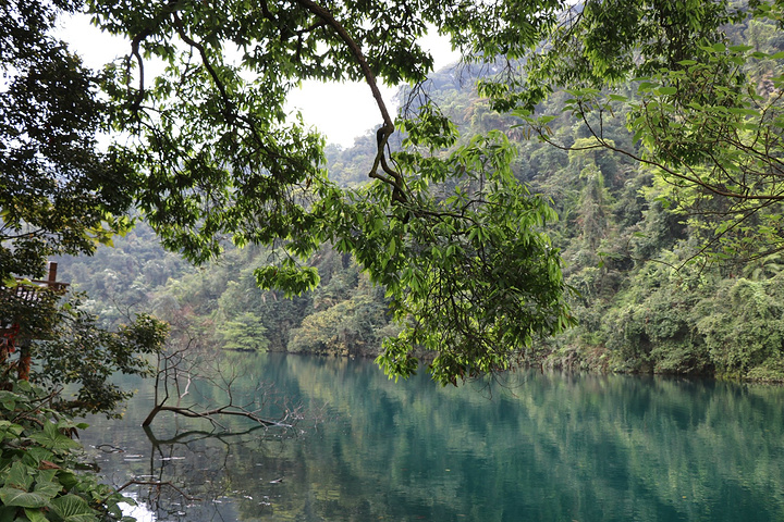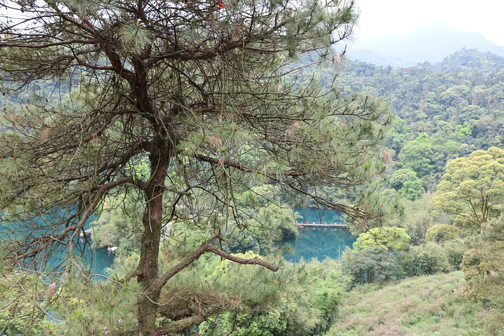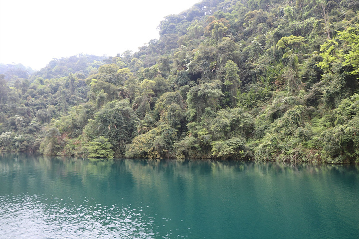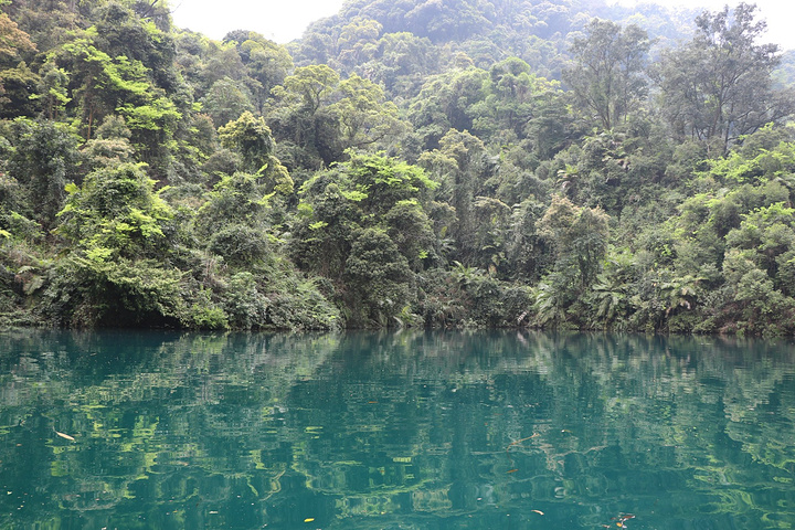 蝴蝶园在鼎湖里面,鼎湖的水不是一般的碧蓝!坐在船上时听导游说着鼎湖的最深处可达18米