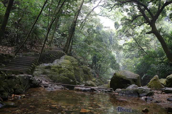 鼎湖山的泉水是地表水,经过层层岩石等的过滤,已经达到了可以直饮的纯净度,想要试下味道的可以到庆云寺里面装,那里有个专门接水的地方。