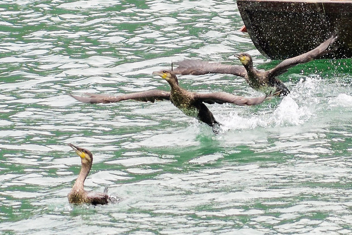 正如小时候课本里面《鸬鹚》所说的一样,渔人只要站起来,拿竹篙向船舷一抹,鸬鹚就都扑着翅膀钻进水里去了