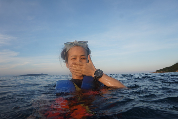 梁哥一放开我,我就没安全感了(虽然穿着救生衣),有阻力阿,毕竟水性不好还在这么深的地方,赶紧随便摆了几个动作拍了