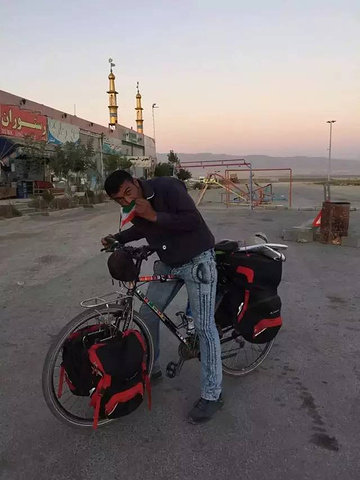西行的公路依旧平整开阔,市郊显得有些破烂。也就是在马什哈德市郊,我第一次被路过的车辆拦下来合影留念。这是一家自行车爱好者,他们要前往不远处骑车游玩,小小的轿车上挂着四辆自行车,人手一台,看得出来一家子都是自行车运动的狂热爱好者。合完影便驾车西去,把我远远的甩在后头。