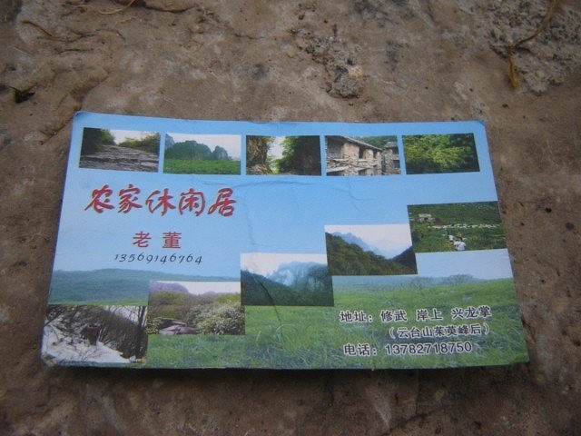老董家现在已成了颇具规模的驴友接待站。门楣上还挂着两块亮闪闪的金字招牌,是“××户外驴友接待站”、“××拓展训练基地”的字样。呵,这样的招牌给人一种别样的感觉。似乎闲散的自然风景又变成了被圈养的人文景观,让远来的人歇脚的地方变成了商业的广告。