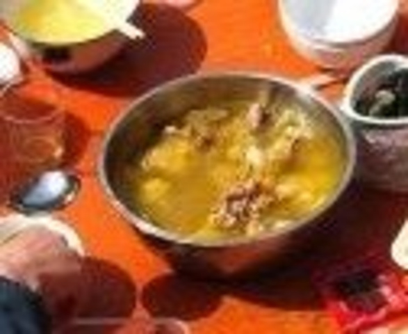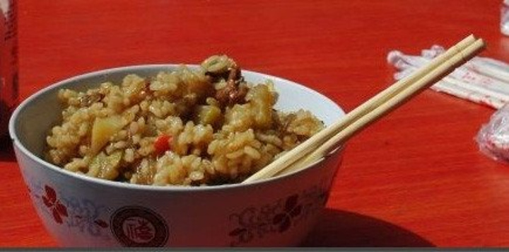 咸米饭,有肉、花生米、土豆、萝卜等一起与生大米炒制而成。