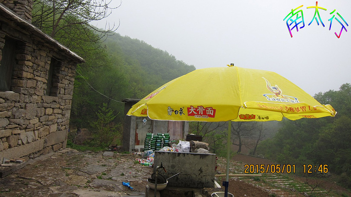 终于,前面有菜地了,我想老董家应该不远了。从岔路上来一对男女,从山东自驾车过来玩,由于是岔路口大家都奔向老董家。路边有一座很古老的小桥,大树下一段残墙,后来老董告诉我,小桥就是古道上的,这残墙是当时的驿站。